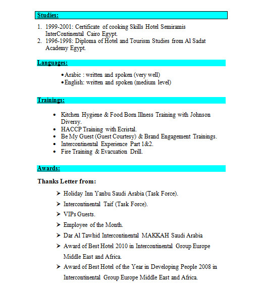 work as sous chef in narcissus hotel 5star (saudi arabia) work as senior chef at millennium(saudia arabia )