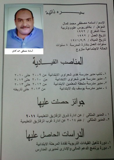 حاصل على دورة مهارات القيادة لمديرى التعليم الابتدائى وجائزة المدير المثالى مرتين